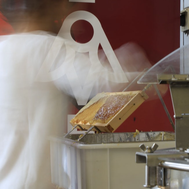 In der geräumigen und modernen Imkerei wird noch jeder Schritt selbst gemacht: Das Einholen der Honigräume, die Entnahme der Waben, das Entdeckeln der Honigwaben (in Handarbeit), das Schleudern und Klären des Honigs sowie die lagerfähige Abfüllung.